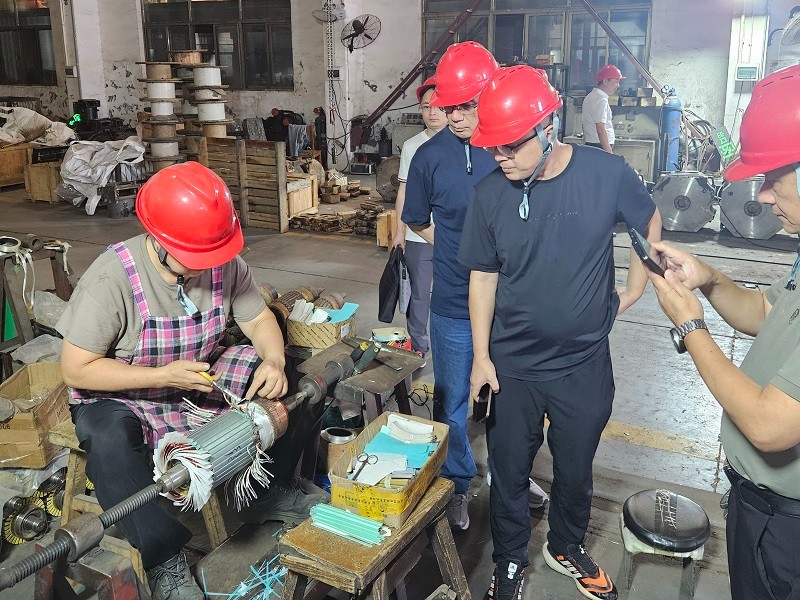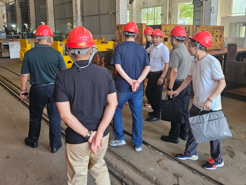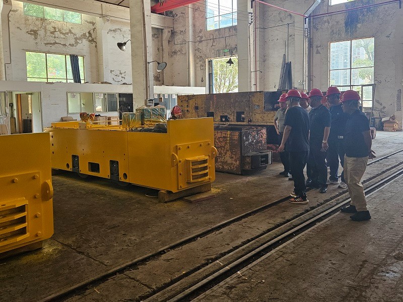 考察團(tuán)首先進(jìn)入生產(chǎn)車間,實(shí)地查看標(biāo)準(zhǔn)礦用電機(jī)車的生產(chǎn)作業(yè)。公司人員詳細(xì)介紹了生產(chǎn)流程、工藝標(biāo)準(zhǔn)以及質(zhì)量把控環(huán)節(jié),從原材料檢驗(yàn)到零部件加工,再到整車組裝調(diào)試,每一道工序都嚴(yán)格遵循規(guī)范??蛻糇屑?xì)觀察生產(chǎn)細(xì)節(jié),不時(shí)就設(shè)備工藝提出疑問,公司人員一一解答。